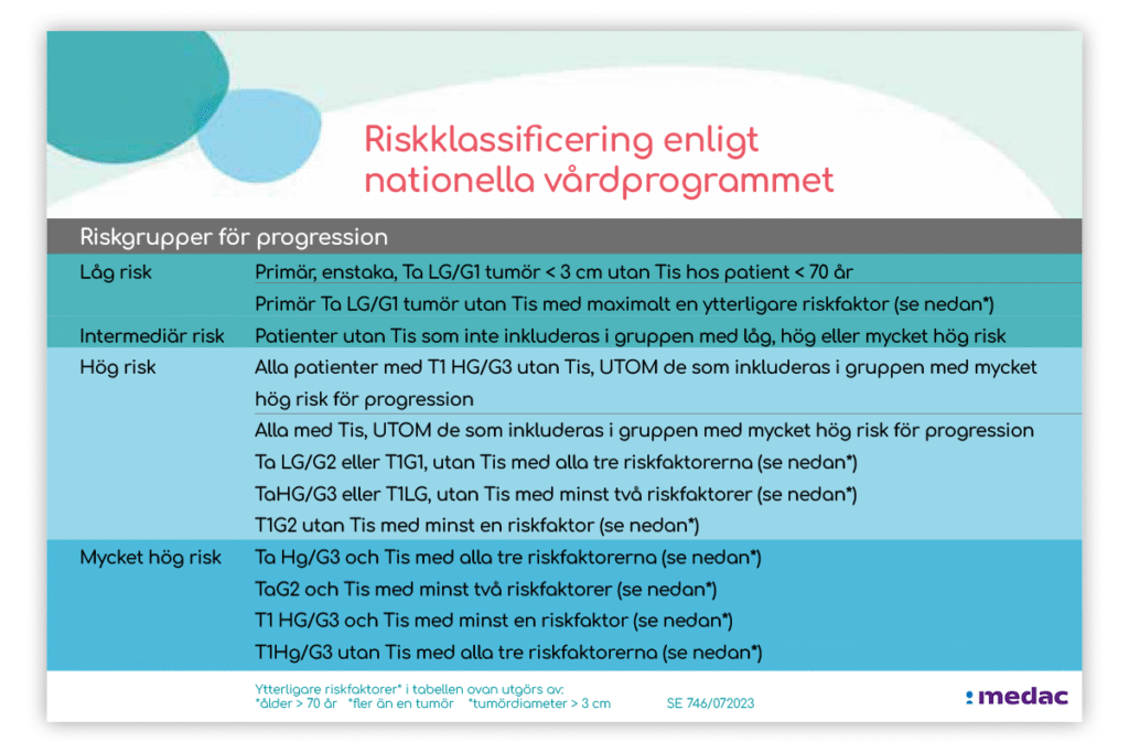 Här en ny tabell över icke-muskelinvasiv blåscancerklassificering enligt EAU och nationellt vårdprogram.